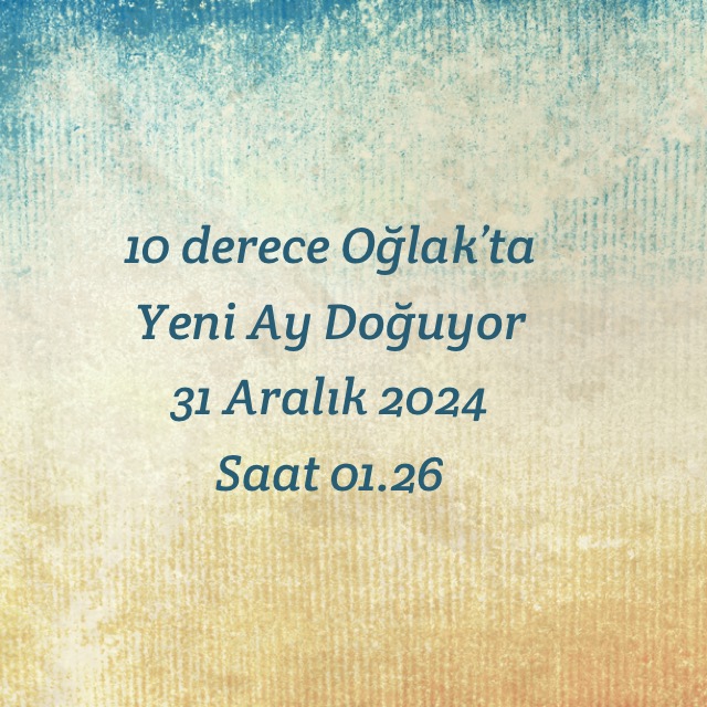 31 Aralık 2024 Saat 01.26’da 10 derece Oğlak’ta Yeni ay oluşuyor.